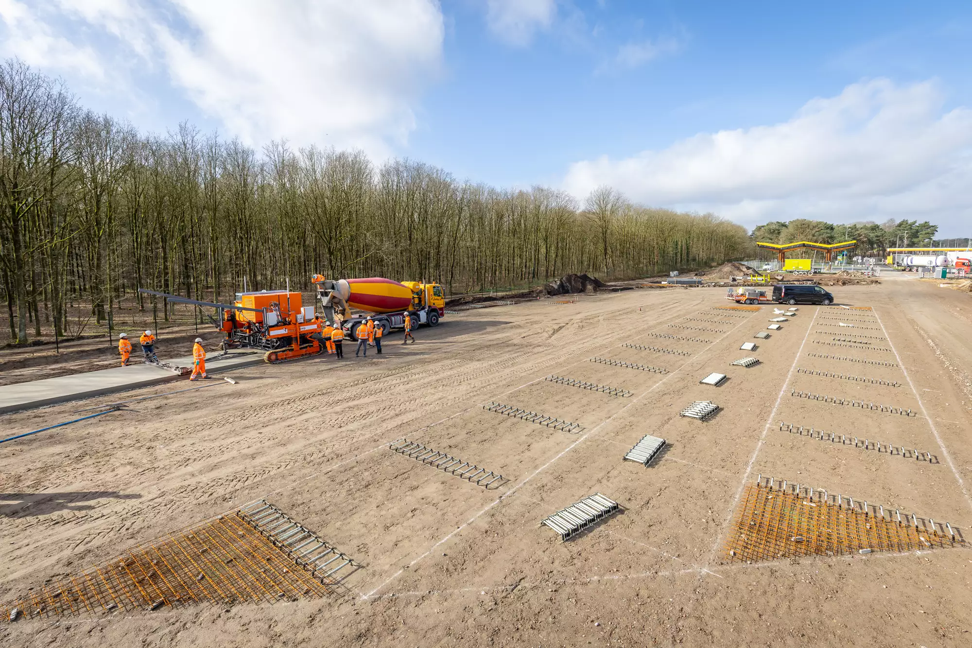 13 april 2026 – Boskalis heeft nu bij de vernieuwing van verzorgingsplaats Kloosters langs de A58 – in opdracht van Rijkswaterstaat – parkeerplaatsen van geopolymeerbeton voor vrachtwagens en personenauto’s aangelegd. Naast dit ‘duurzame beton’ komen er ook waterdoorlatende parkeervakken. Regenwater kan dan gewoon de grond in zakken. Het testen van deze nieuwe materialen sluit aan bij het doel van InnovA58 om de Nederlandse infrastructuur toekomstbestendig en klimaatadaptief te maken.