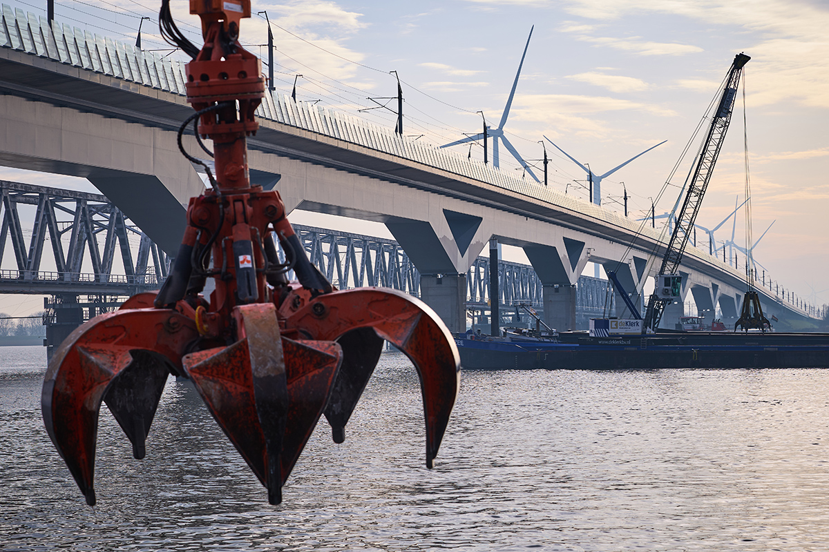2 maart 2026 – De herstelwerkzaamheden onder water bij de HSL-brug over het Hollandsch Diep zijn klaar. Sinds begin november werkte ProRail aan het versterken van de bodem rond de brugpijlers tussen Dordrecht en Moerdijk. Dat werk is nu afgerond, zeven weken eerder dan verwacht. De brug is een belangrijke schakel in het (inter)nationale treinverkeer.