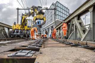 1501, 2025 Laatste brugdeel bij station Amsterdam Centraal geplaatst Laatste brugdeel bij station Amsterdam Centraal geplaatst